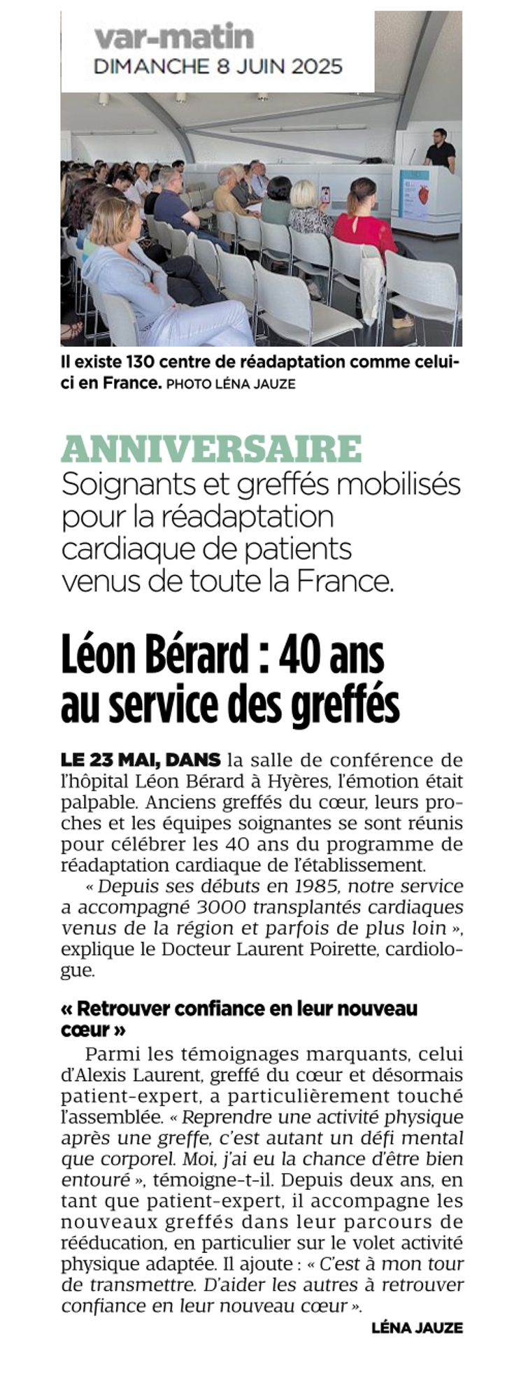 Cette manifestation a rassemblé les équipes de Chirurgie Cardiaque et de suivi de greffes cardiaques du CHU de Marseille, du CHU de Lyon et du CHU de Montpellier, ainsi que les équipes de soins et de rééducation de l'Hôpital Léon Bérard, dirigées par le Docteur Laurent POIRETTE, Chef de Service de Réhabilitation Cardiaque.