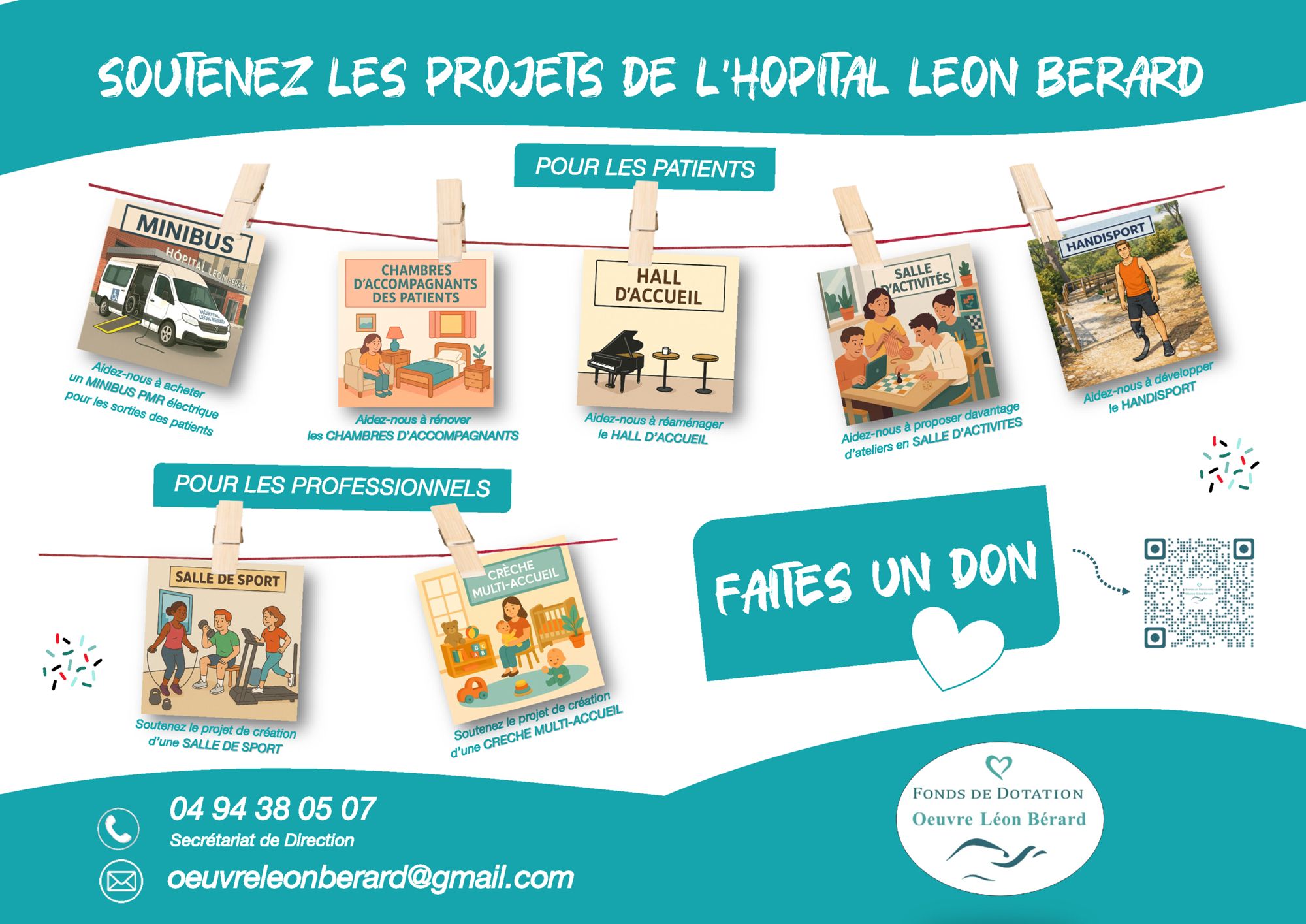 Il est également possible de faire parvenir les dons par chèque à l'ordre du "Fonds de Dotation Œuvre Léon Bérard "