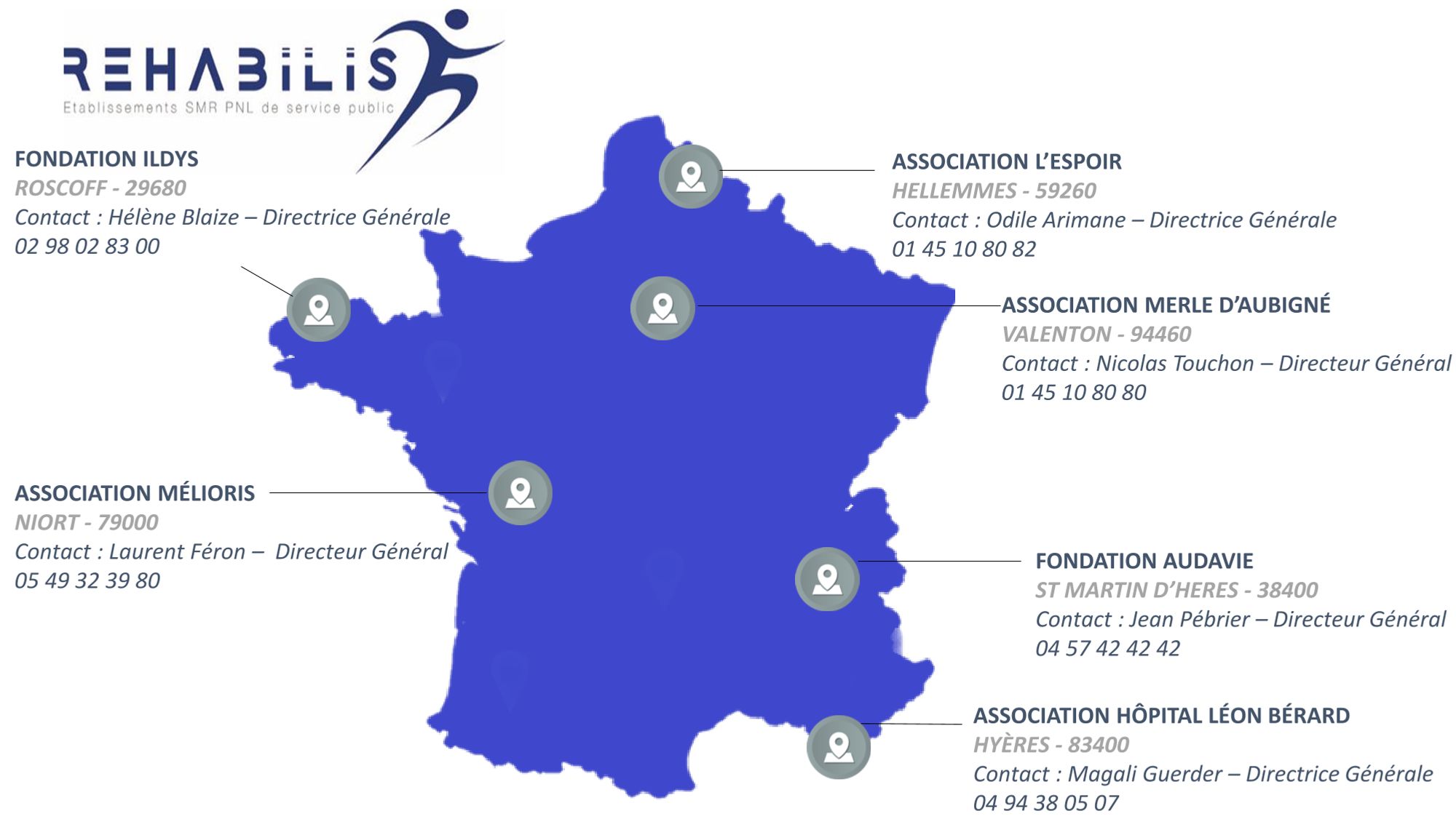 Création en mai 2022 d'une union de six associations, établissements de Soins Médicaux et de Réadaptation Privés à but Non Lucratif de service public (Hôpital Léon Bérard en PACA, Centre l'Espoir à Lille, Association Ildys en Bretagne, Association Mélioris à Niort, Institut Merle d'Aubigné à Valenton et Association Audavie à Grenoble)