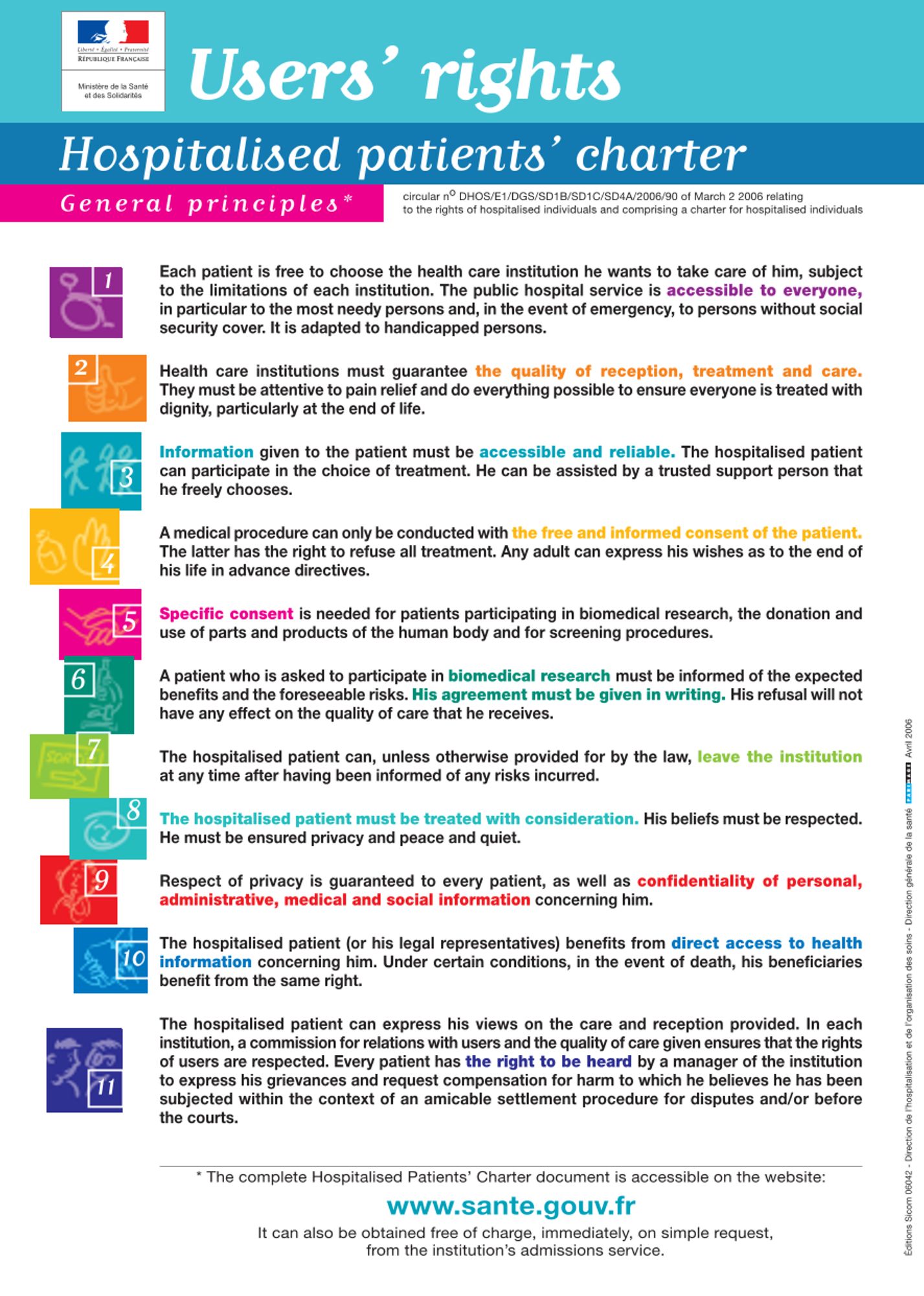 Un exemplaire des principes généraux et du texte intégral en braille est mis à la disposition des patients :