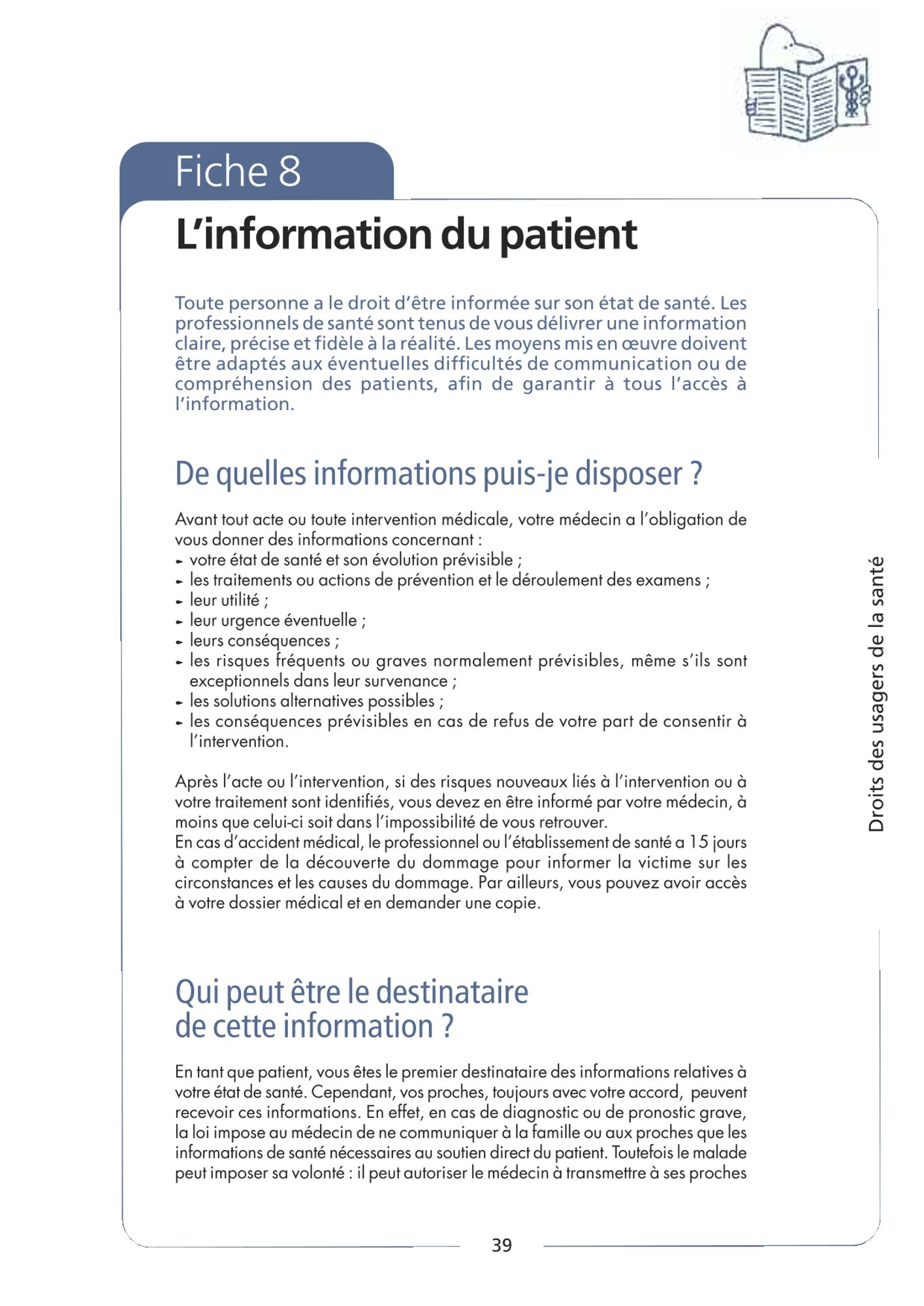 Chaque patient a la possibilité d’obtenir régulièrement des informations médicales le concernant auprès du Médecin du Service.