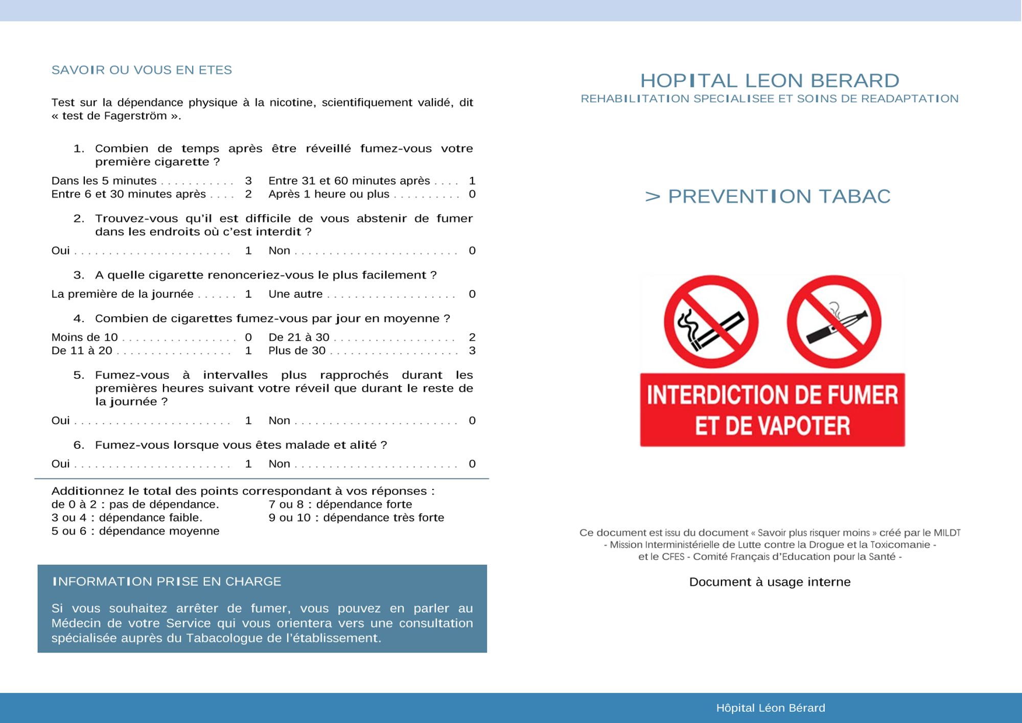 - soit au cours de la période d'hospitalisation dans le cadre d'une consultation spécialisée assurée sur site (contact : Mme Gabrielle LACROIX, Tabacologue / Responsable de l'Unité de Diététique),
