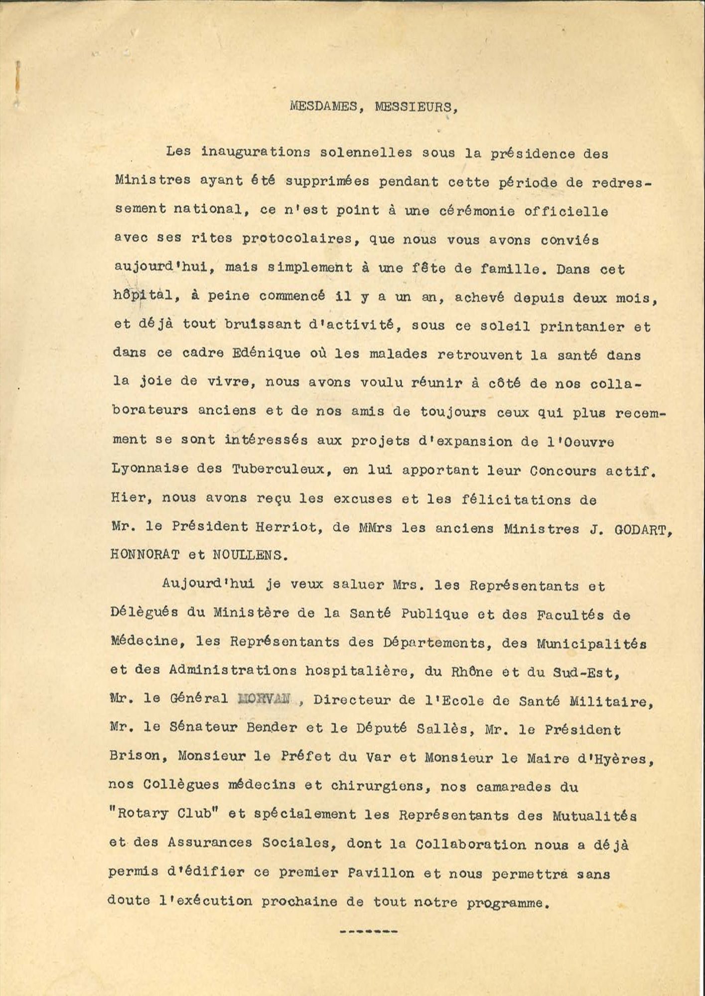 A la fin de l’année 1937, l’Hôpital Hélio-Marin Interdépartemental, situé face à la mer, dans une propriété de 17 hectares de pinède, disposera d’une capacité-lit totale de 370 lits (150 femmes et jeunes filles, et 220 hommes et jeunes gens), sous la direction du Docteur Félix BERARD.