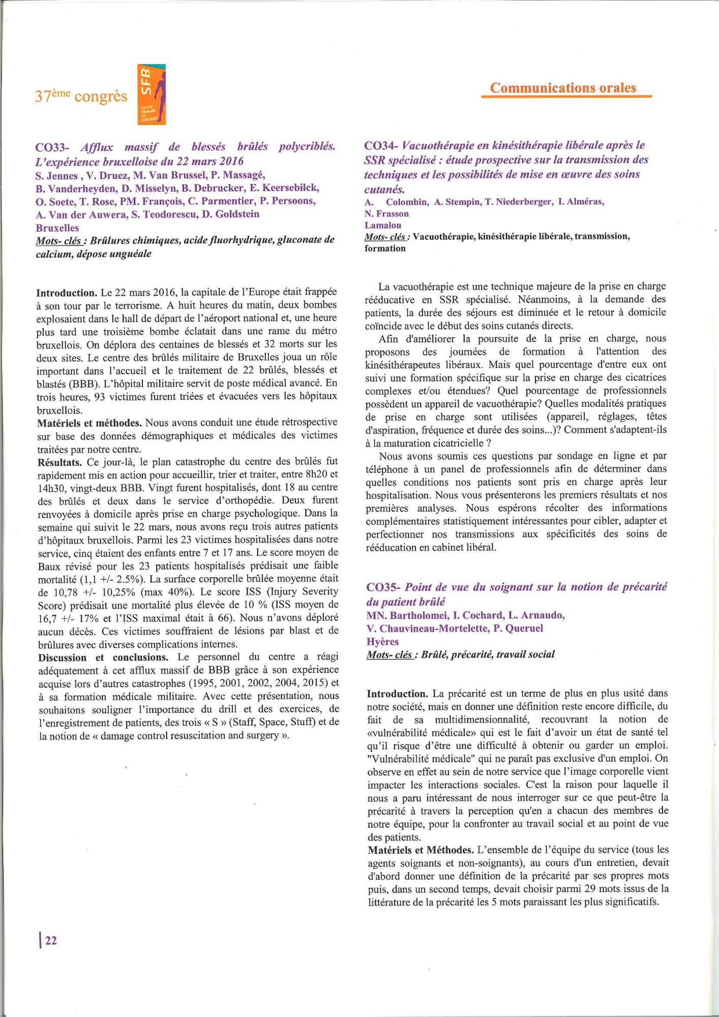 SFB 2017 - Article - Point de vue du soignant sur la notion de précarité du patient brûlé Consulter l'article (818.7 Ko)