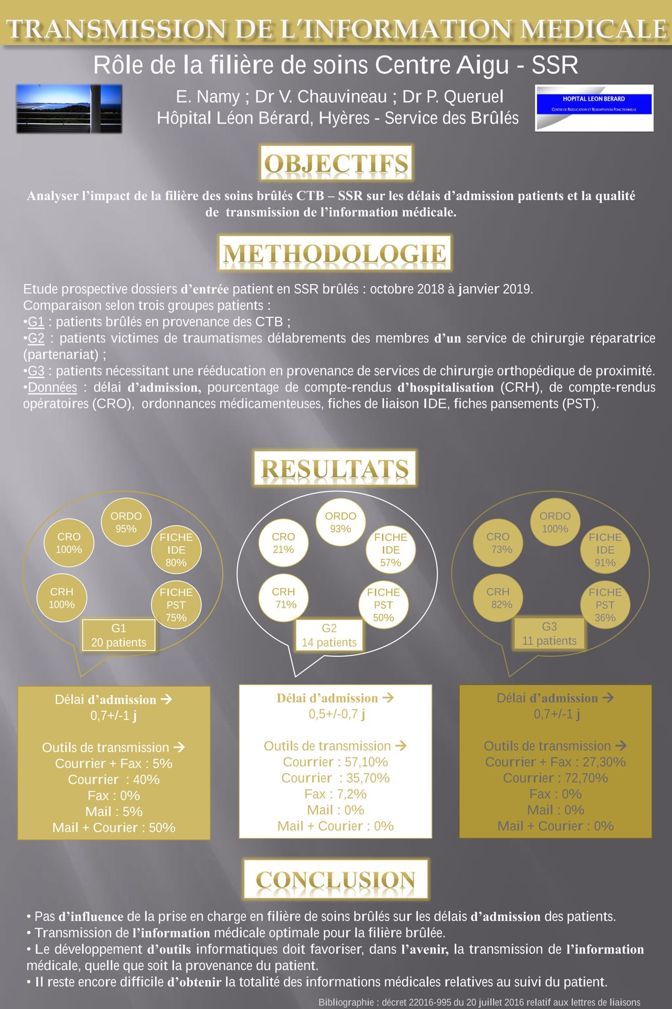 SFB 2019 - Poster - Transmission de l'information médicale - Rôle de la filière de soins centre aigu - SSR Consulter le poster (998.6 Ko)