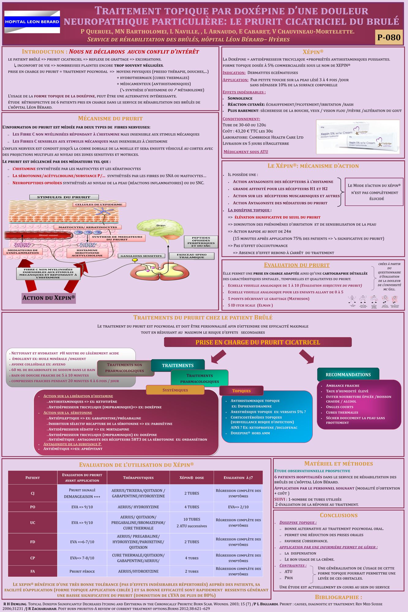 SFB 2017 - Poster - Traitement topique par doxepine d'une douleur neuropathique particulière : le prurit cicatriciel du brûlé Consulter le poster (1.5 Mo)