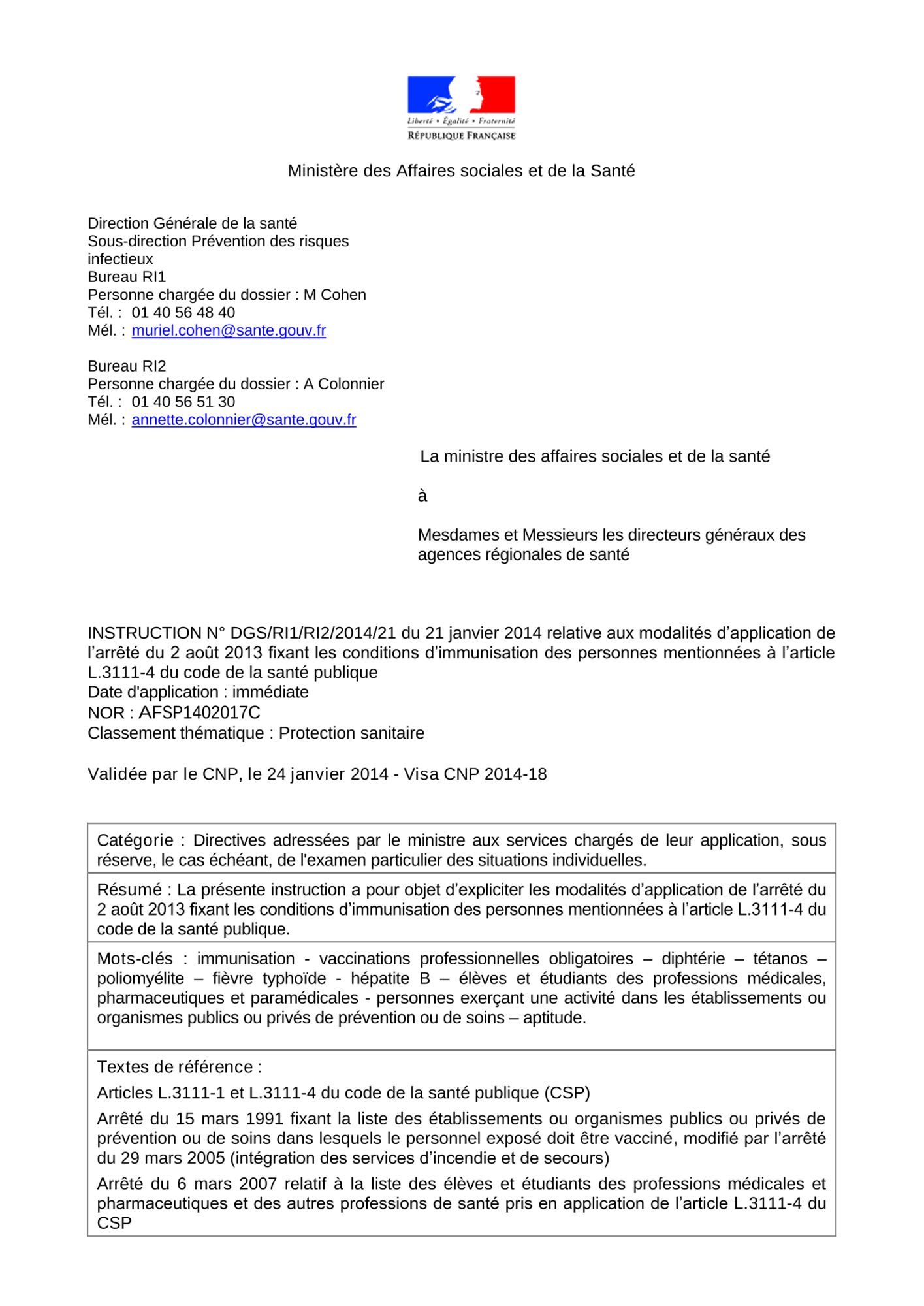Les conditions de l'immunisation prévue au présent article sont fixées par arrêté du ministre chargé de la santé pris après avis de la Haute Autorité de santé et compte tenu, en particulier, des contre-indications médicales.